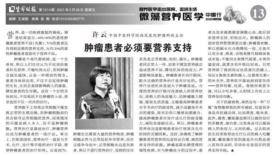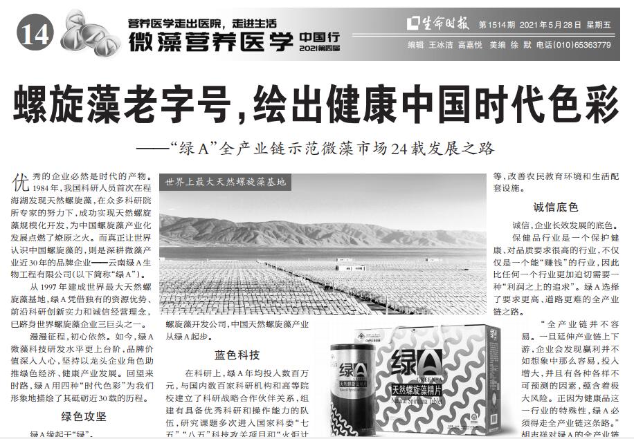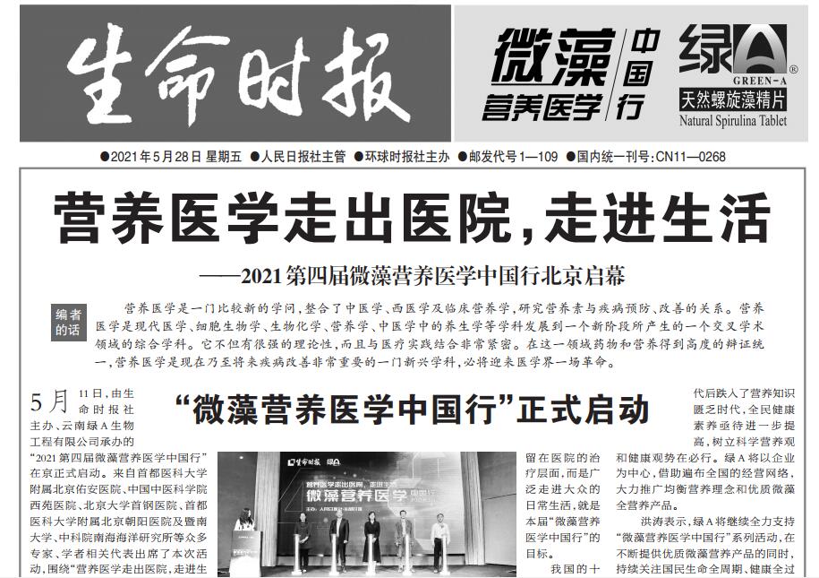 當前位置:首頁 > 資訊中心 > 綠A·聚光燈 > 《生命時報專刊》-第四屆微藻營養(yǎng)醫(yī)學中國行